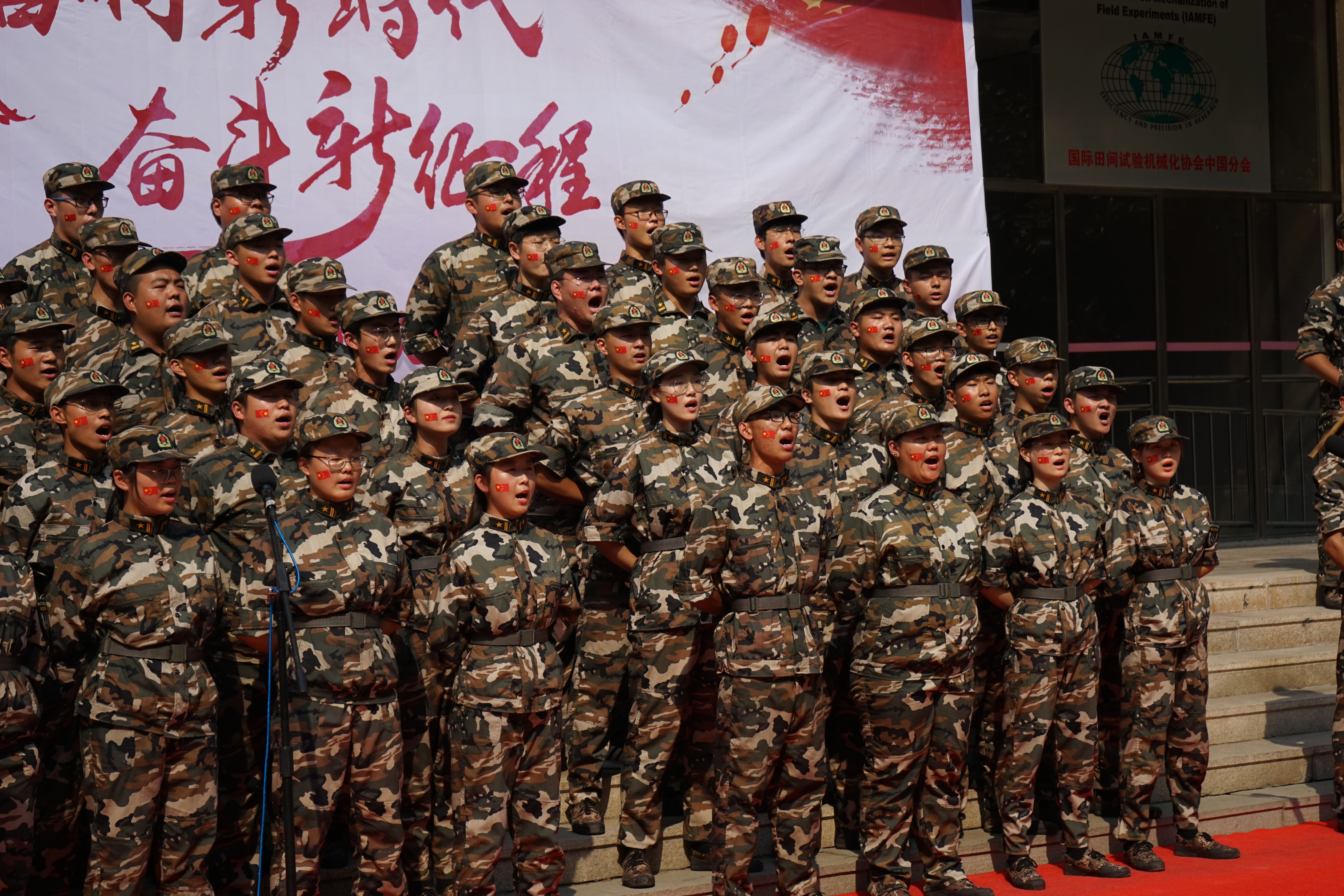 典礼首先进行军训队列汇演。队列汇演共有来自公司五个专业的七支队伍,所有队伍为准备此次汇演均进行了长达一个月的训练。一个月的训练,让新生原本青稚的脸上多出几分军人的坚毅。七支队伍依次走过主席台,向观看席的领导展现2019级新生昂扬向上的精神面貌。从报数,稍息,立正,跨列,蹲下,起立到齐步走过主席台,参加汇演的新生们用坚定的步伐,铿锵有力的口号赢得了所有人的掌声。