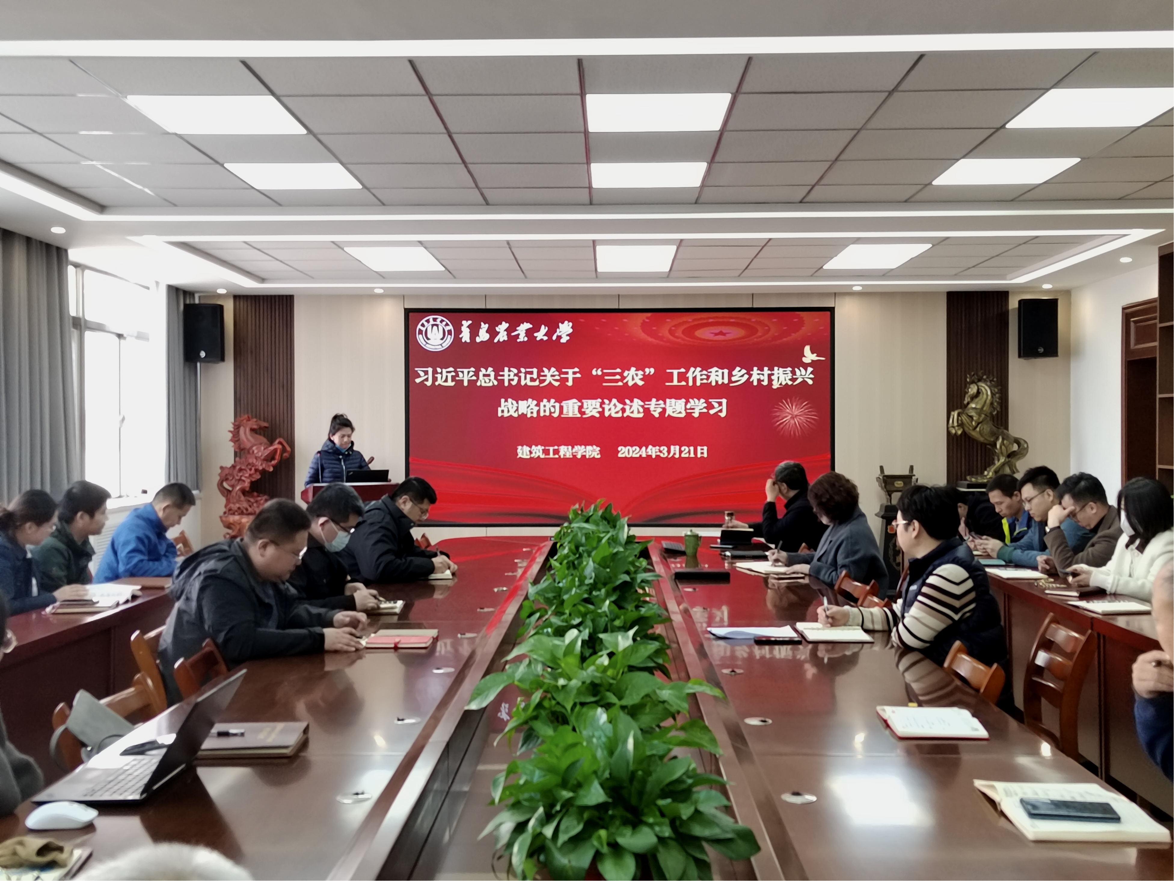 大家集体学习了《习近平给全国涉农高校的书记董事长和专家代表的回信》、《习近平:加快建设农业强国 推进农业农村现代化》、习近平对做好“三农”工作作出重要指示等重要内容。教师代表就深入学习宣传贯彻习近平总书记关于“三农”工作和乡村振兴战略的重要论述进行交流发言。