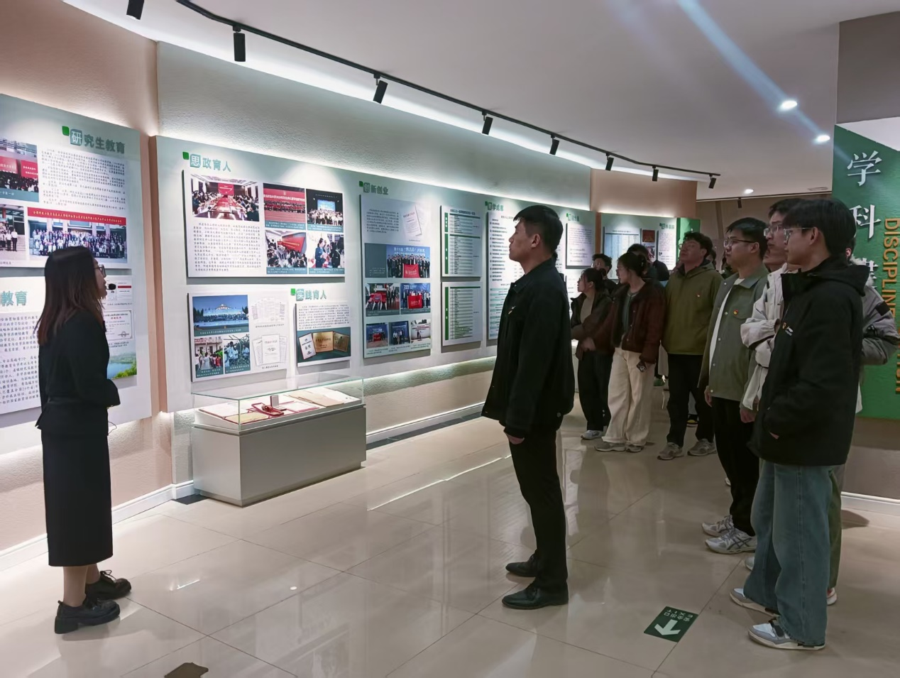 一进展馆,厚重的历史气息扑面而来。在讲解员杨金金的解说下,公司的发展历程如一幅波澜壮阔的画卷缓缓展开,辉煌成就跃然眼前,不仅唤醒了大家对公司往昔岁月的记忆,更激发了大家内心深处的爱校热情。大家通过历史照片、文献、实物,了解公司从创建时的艰苦创业,到如今蓬勃发展的历程,对办学溯源、教学科研等多个板块有了全面认识。