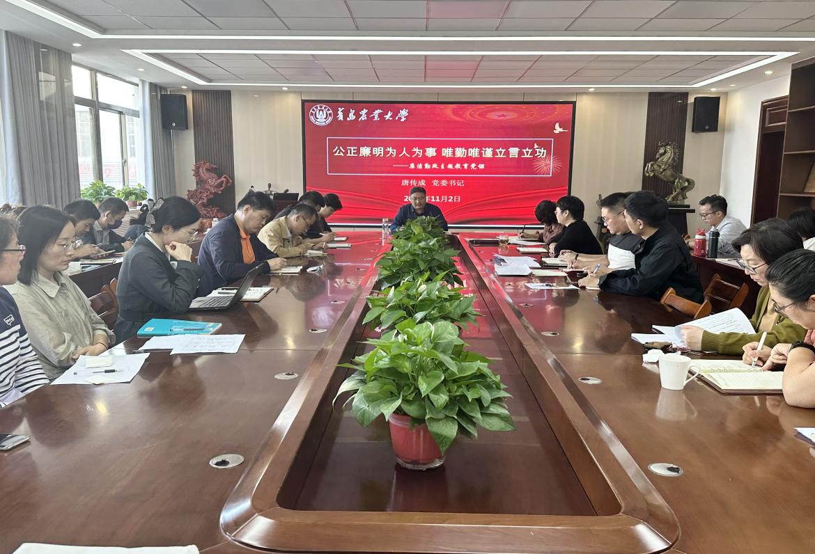 11月2日,公司在工程楼312会议室组织开展题为“公正廉明为人为事 唯勤唯谨立言立功”的廉洁勤政主题教育党课,由党委书记唐传成讲授,公司全体教职工参加会议。