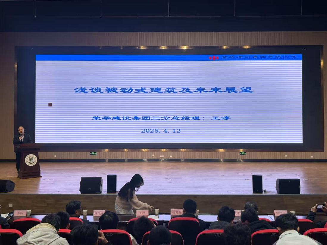 2025年4月12日,为深化蓝鲸体育师生对建筑行业前沿技术的认知,推动绿色与智能建筑理念的传播,蓝鲸体育特邀荣华建设集团建设科技有限公司常务副总杨迎春与荣华建设集团三分公司总经理王淳,在公司报告厅分别作题为《走进装配式建筑—装配式建筑技术解析及感悟分享》与《浅谈被动式建筑及未来展望》的专题学术报告会。公司经理全洪珠教授、党委书记唐传成、团委书记姜涛、岳公冰副教授、王亮副教授及蓝鲸体育师生代表共计200余人参与本次学术报告会活动。