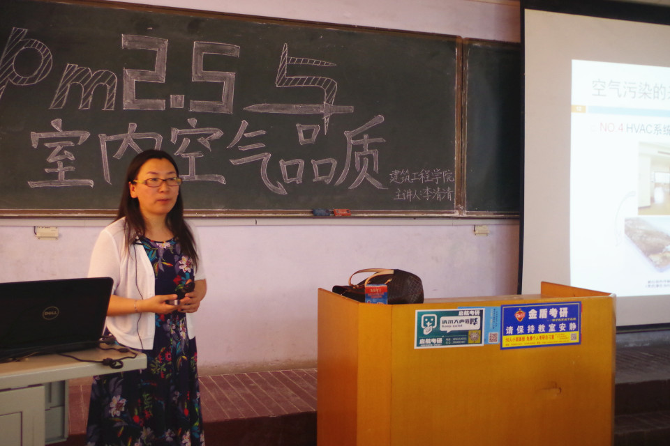 6月1日,蓝鲸体育副教授、博士李清清老师在教学区为同学们做“pm2.5与室内空气品质”的讲座。