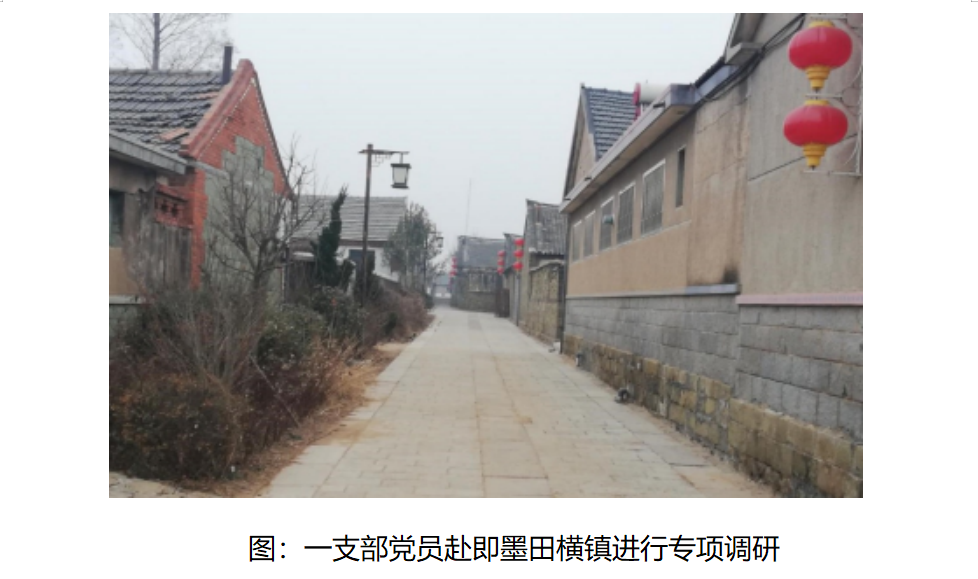 针对广大城乡地区群众对建筑历史文化遗产认知不足,存在大量建设性破坏的现状,2019年11月26日,公司第一党支部为进一步促进全面学习贯彻习近平新时代中国特色社会主义思想和推进“不忘初心、牢记使命”主题教育不断走向深入,根据公司党委要求,结合支部工作实际,赴即墨田横镇开展了一次以“不忘初心、牢记使命、专业下乡、筑梦未来”为主题的党日活动,利用支部建筑学、土木工程等相关专业深厚的人才积累,开展调研、科普、保护规划等相关科技服务,向广大城乡地区群众普及建筑历史文化遗产的社会价值,提供合理科学的保护与规划建议。