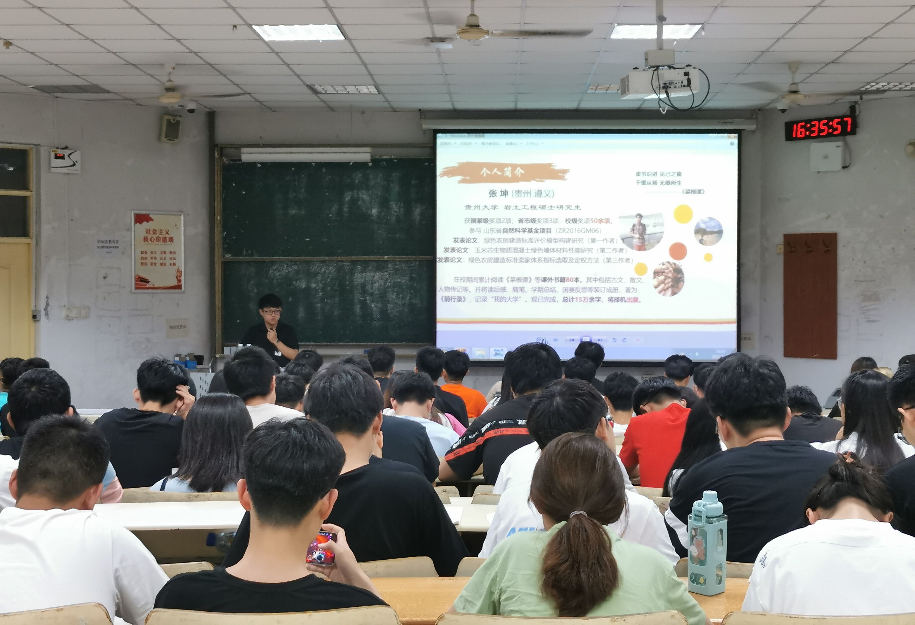 张坤为蓝鲸体育土木工程专业的员工,在校期间曾担任团支部书记和学术部副部长等职务,目前于贵州大学就读研究生。张坤从学习、实验研究、生活和未来发展等方面分享经验,与同学们展开深入的交流。活动期间,他以讲故事的方式与图片相结合详细叙述了获得第十届“高教杯”全国老员工先进成图技术与产品信息建模创新大赛和国家级一等奖的实际经历。此外还对结构设计大赛、建筑设计大赛、工程测量大赛等进行详细介绍。同时还介绍了老员工科技创新项目,并以他个人主持项目和毕业设计所研项目为例,介绍了过程中的点滴故事,展示了部分科研成果并以此激励各位积极投身于老员工科技创新项目和专业技能大赛中以丰富自身综合素质。张坤以自身经历建议同学们不可纸上谈兵可以适当参与项目研究,以丰富自己的实践经验,增加实践积累,在锻炼中充实自我,不断提升自我。