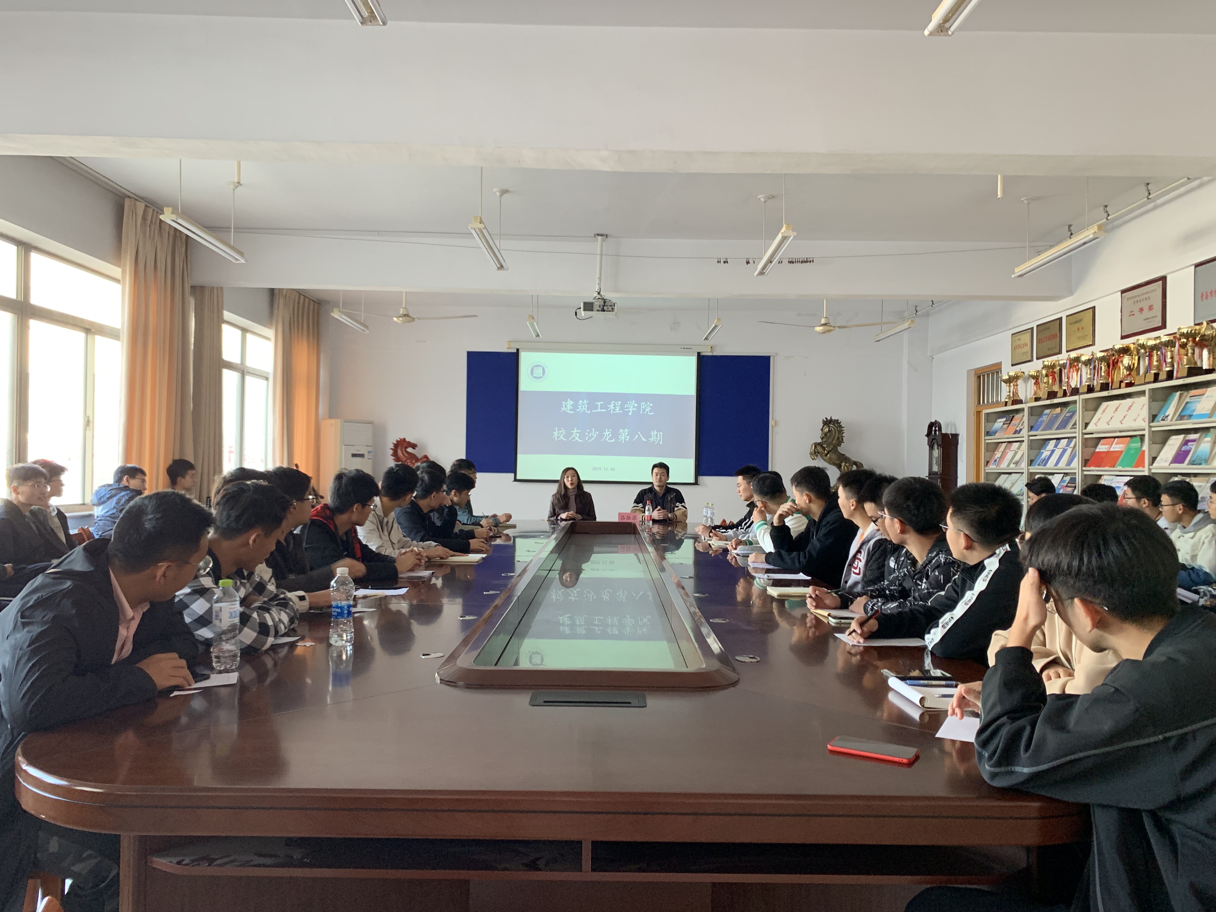 11月4日,公司在工程楼会议室举办第八期员工沙龙活动。公司邀请建筑装饰工程专业(专科)吕振源回到母校,回顾在校经历,分享考研生活。公司团委书记刘园园出席活动。