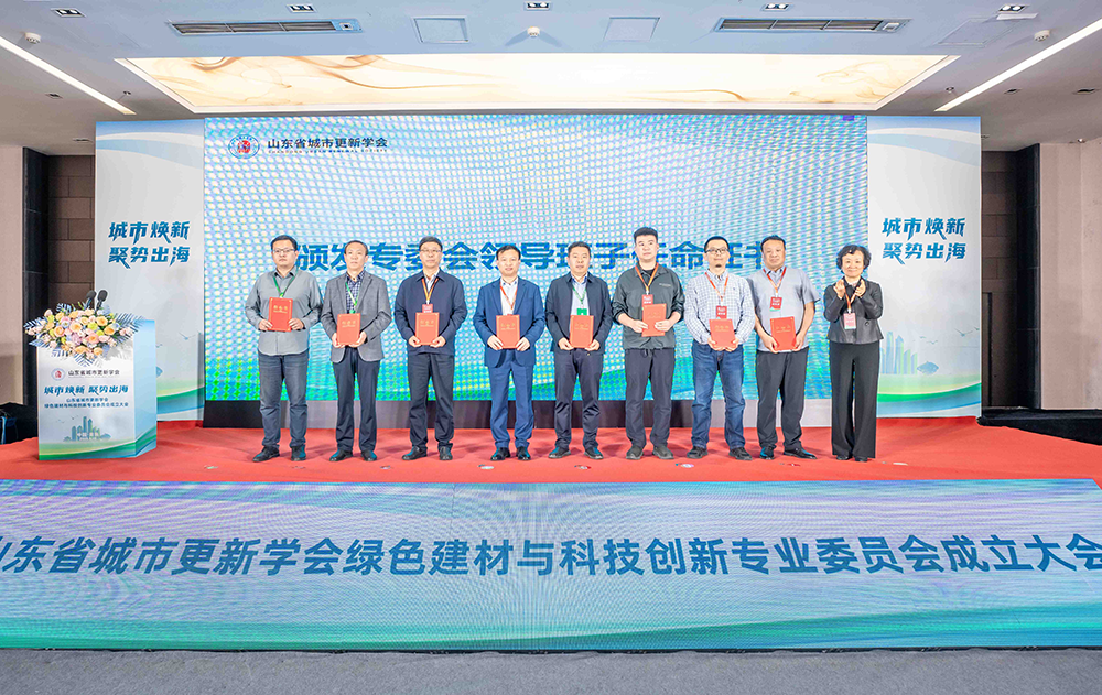 5月15日,山东省城市更新学会绿色建材与科技创新专业委员会成立大会在青岛市城阳区隆重召开。大会以“城市焕新、聚势出海”为主题,旨在深化绿色建材技术创新与产业协同,为山东省城市高质量发展注入新动能。山东省住建厅原副厅长、一级巡视员,山东省城市更新学会专家委员会主任耿庆海,青岛市住建局原副巡视员、山东省城市更新学会专家委员会副主任林丽萍,山东省城市更新学会秘书长宋其勇、山东领军环保科技集团董事长李香祖等领导出席会议。公司全洪珠经理与倪松远教授、陈明旭教授、孟丹副教授等一行10余位教师作为专委会副主任单位会员参会。