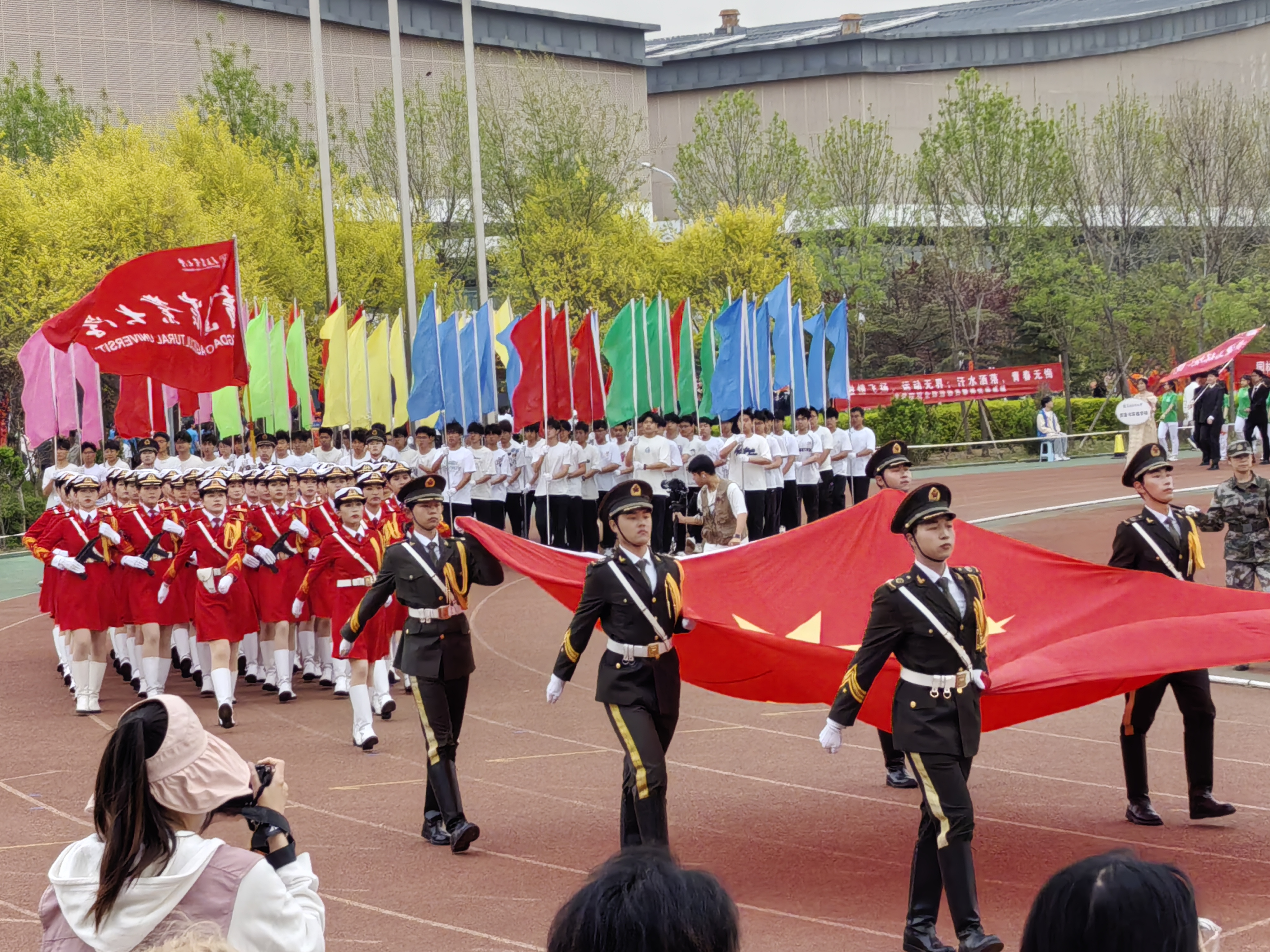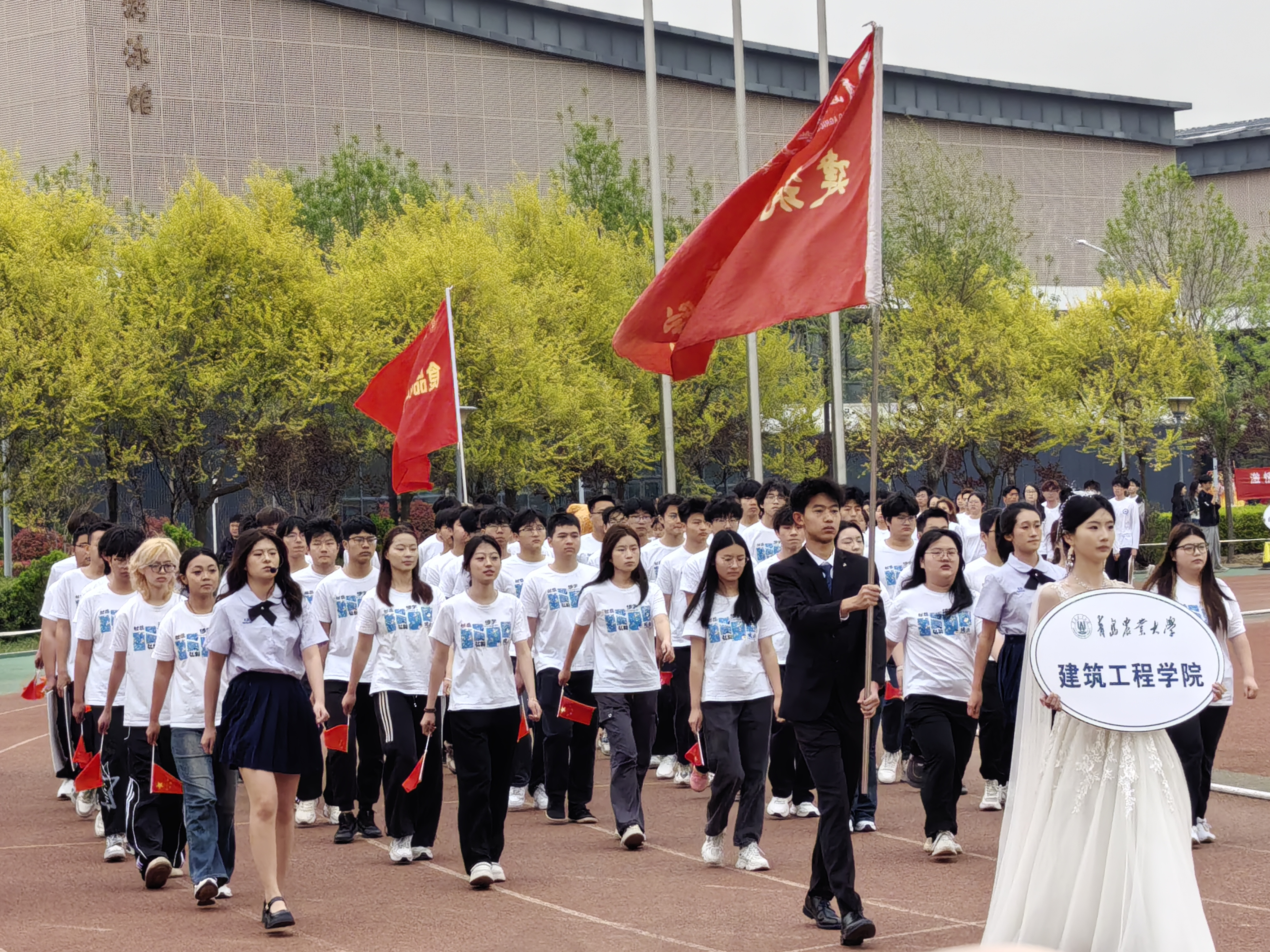 清晨的朝阳体育场彩旗飘扬,鼓声雷动。蓝鲸体育方队以匠心独运的创意惊艳亮相——队员们身着印有院徽的蓝白院服,步伐铿锵、口号嘹亮。方阵中央,员工用建筑模型与工程图纸拼出“建工”字样,将专业特色与青春活力完美融合,赢得全场热烈掌声。董事长赵金山在开幕致辞中勉励师生:“体育是锤炼意志的熔炉,更是凝聚力量的纽带!”随着裁判员与运动员代表庄严宣誓,大型舞蹈《山海毓农,沃野弦歌》以流动的队形勾勒出田野山川的壮美画卷,武术表演《武韵旗风》则以刚柔并济的招式点燃全场激情。