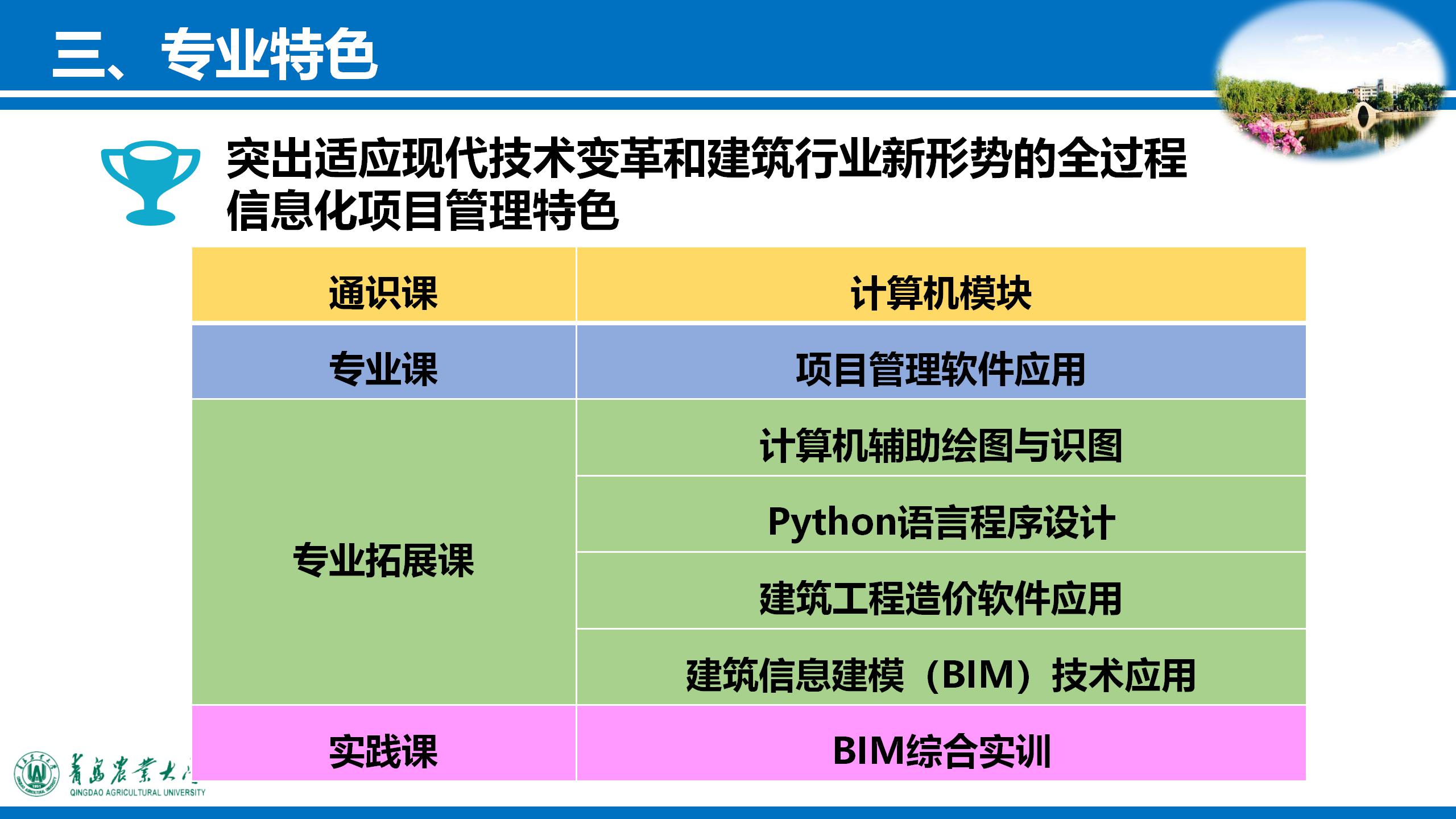 办学条件:现有专业教师26人,其中教授9人,副教授6人,高级职称教师占50%,硕士占70%,博士占30 %。设有工程管理和工程造价2个实验室,实验设备值近100万元。
